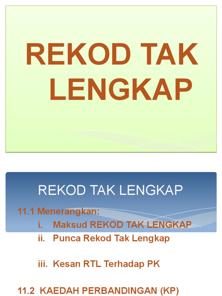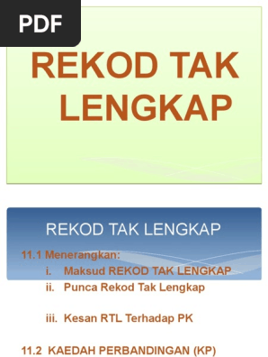 KEADAAN MENYEBABKAN REKOD TAK LENGKAP. -- Modul 11 Rekod Tak Lengkap 2 1 Pengenalan Download presentation. REKOD TAK LENGKAP REKOD TAK LENGKAP.